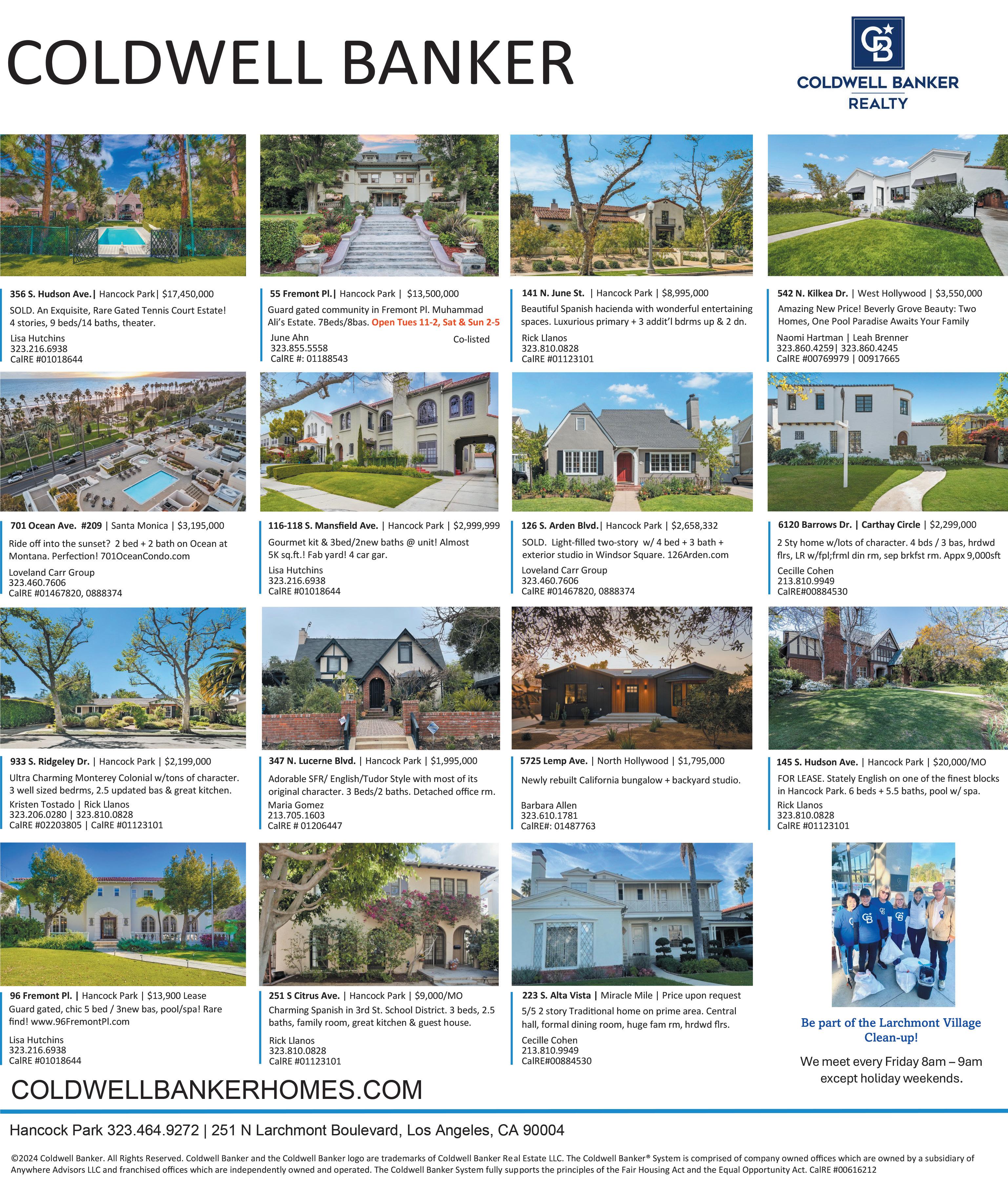 Sun’s Out.... Now’s the Time to Repair Your Gutters and Downspouts! Local Hancock Park resident for over 35 years, specializes in gutter cleaning and repair. Brian Brady (213) 910-0980 © LC 0717 Handyman Services, too! B Gaddy ElEctric since 1978. Residential • Comme RC ial Call Bill 323-462-1023 Local References Service & Repairs Licensed & Insured LIC #700914 • Upgrades • Landscape • Pool Lights • Phone & Computer Lines • Security & Emergency Lighting ©LC1010 SERVING THE LARCHMONT AREA FOR OVER 60 YEARS! SERVING THE LARCHMONT AREA FOR OVER 60 YEARS! ©0424 1551 E. 25th St., LA 90011 License #768437 Lynn Shirley (323) 463-9201 FAX (323) 463-1259 Since1959 • COMMERCIAL • RESIDENTIAL PLOTKE Plumbing Inc. 18 SECTION TWO MAY 2024 Larchmont Chronicle