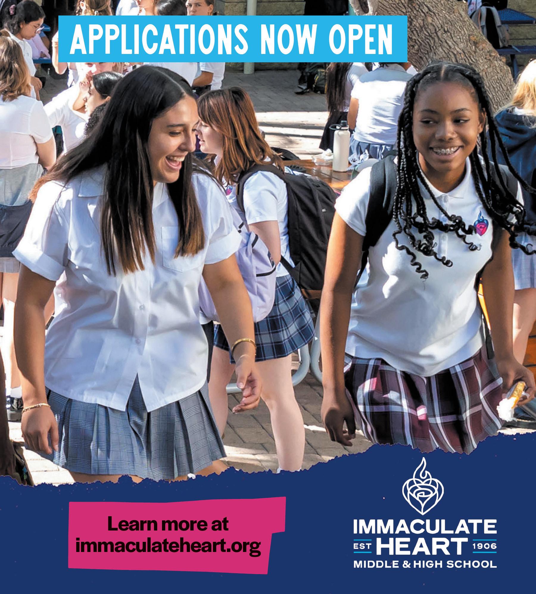 During October, our fall sports teams honored Breast Cancer Awareness Month by hosting “Pink Out” games. Athletes donned pink attire to commemorate breast cancer survivors. Our new Panda Mascot and Cheer Squad brought their support during our Oct. 10 volleyball games. Also the Latinas Unidas club organized a festival on the quad in honor of Hispanic Heritage Month. Coming up, the school invites 7th and 8th graders to “Hangout with Heart!” on Nov. 16. The morning event will offer engaging academics and activities, as well as an opportunity for students to meet IH teachers. Those interested can register at immaculateheart.org/hangout.