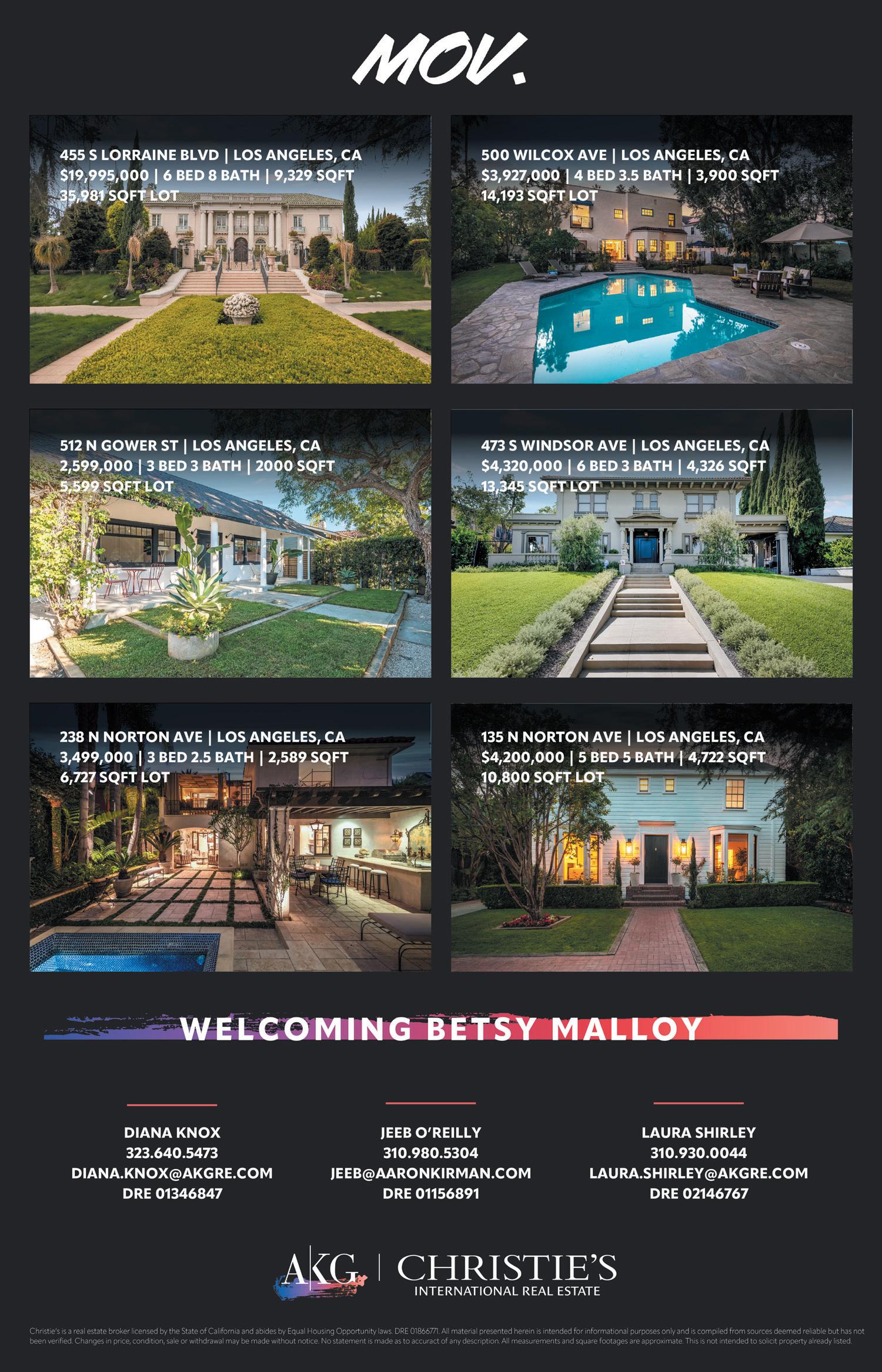 616 N. Martel Ave. $4,752,000 542 N. Vista St. $4,750,000 206 N. Lucerne Blvd. $3,303,000 823 S. Hudson Ave. $3,025,000 102 S. Wilton Pl. $2,950,000 160 N. Poinsettia Pl. $2,915,000 683 S. McCadden Pl. $2,650,000 201 S. Larchmont Blvd. $2,626,937 226 N. Arden Blvd. $2,430,000 802 S. Genesee Ave. $2,275,000 542 N. McCadden Pl. $2,270,000 110 N. Gardner St. $2,200,000 329 N. Windsor Blvd. $2,000,000