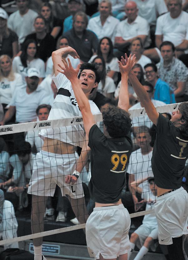 Above: WELCOMING Mayor Bass (in red) and Casey Wasserman (in front) and Olympians (in powder blue) are, from left, Governor Newsom and Jennifer Siebel Newsom and LA28 CEO Reynold Hoover.