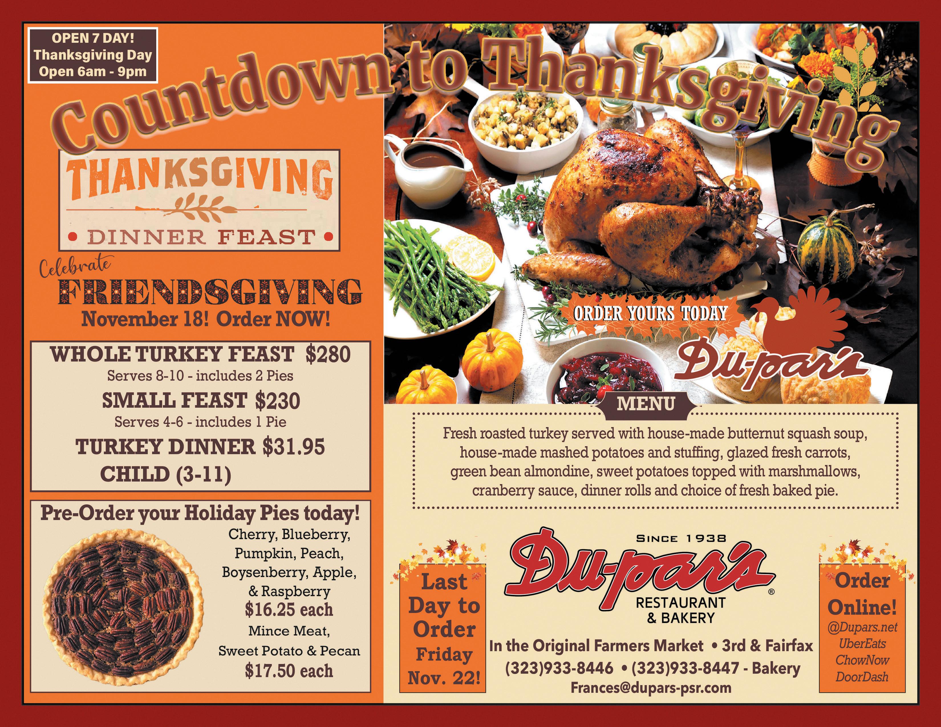 Thurs., Nov. 28 — Thanksgiving Day and delivery of the December issue of the Larchmont Chronicle