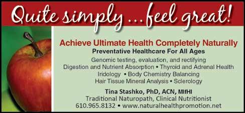 Bethlehem Nutrition & Wellness Center, we give you the tools to bring you and your family into a state of optimal health. Using the most advanced nutritional testing available, we look for the underlying cause of your health problems. Once the underlying cause is addressed not only do symptoms go away, but your overall health can also be greatly improved. See ad, page 10.