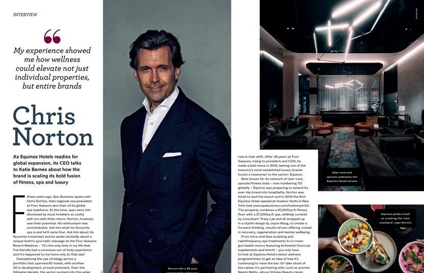 On page 44, we interview Chris Norton, CEO of uber-cool Equinox Hotels, sister brand to the fitness
