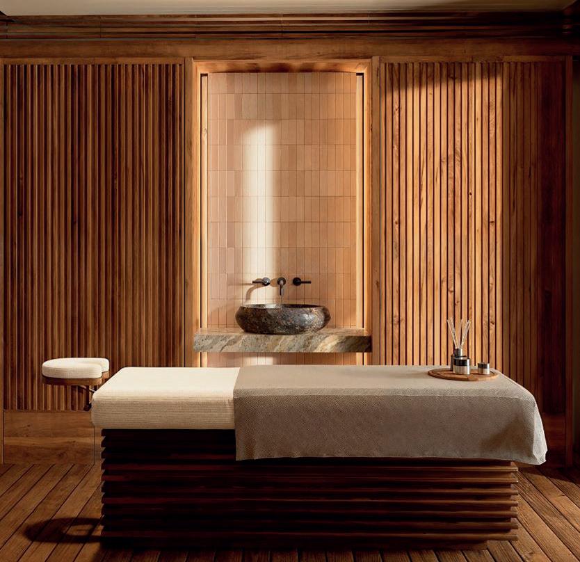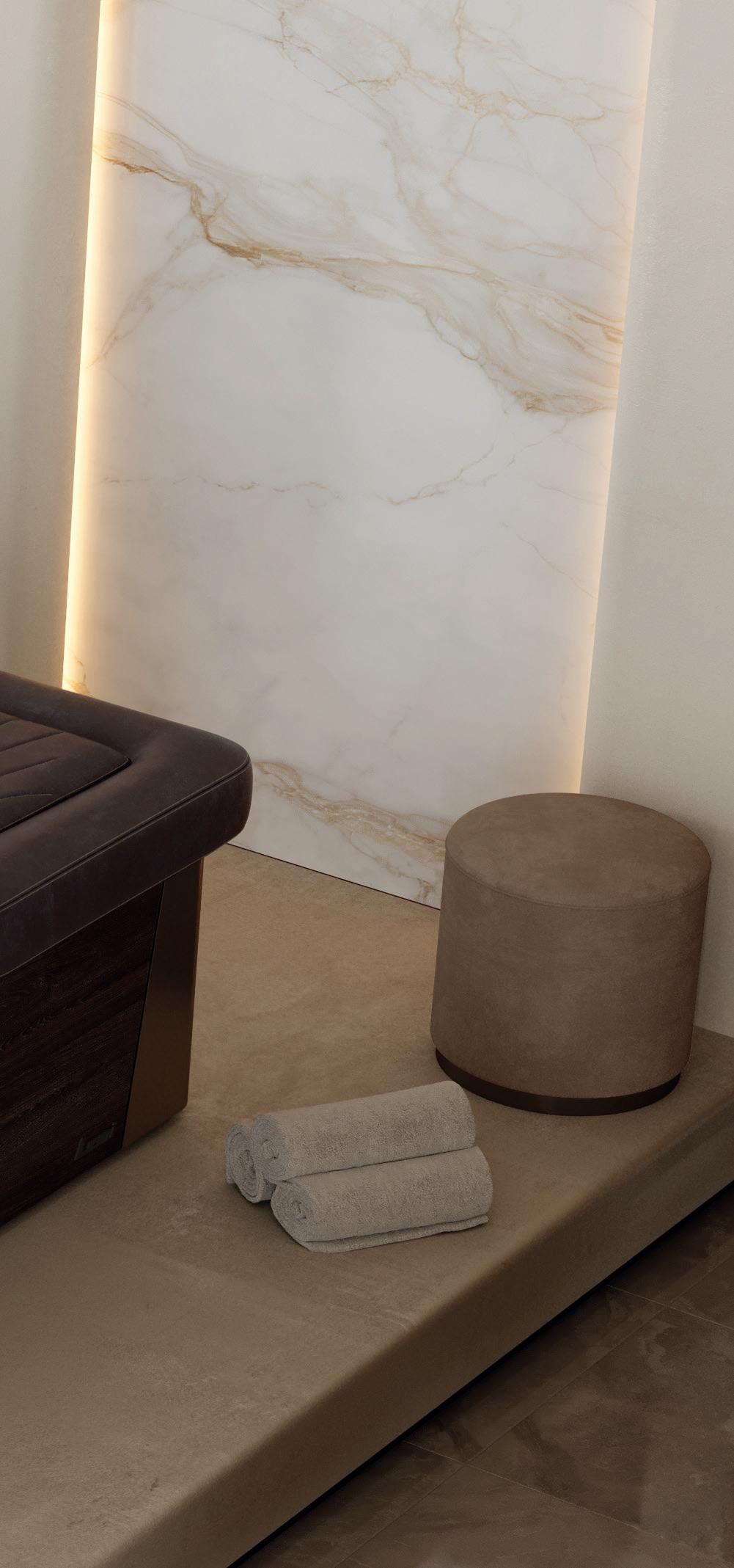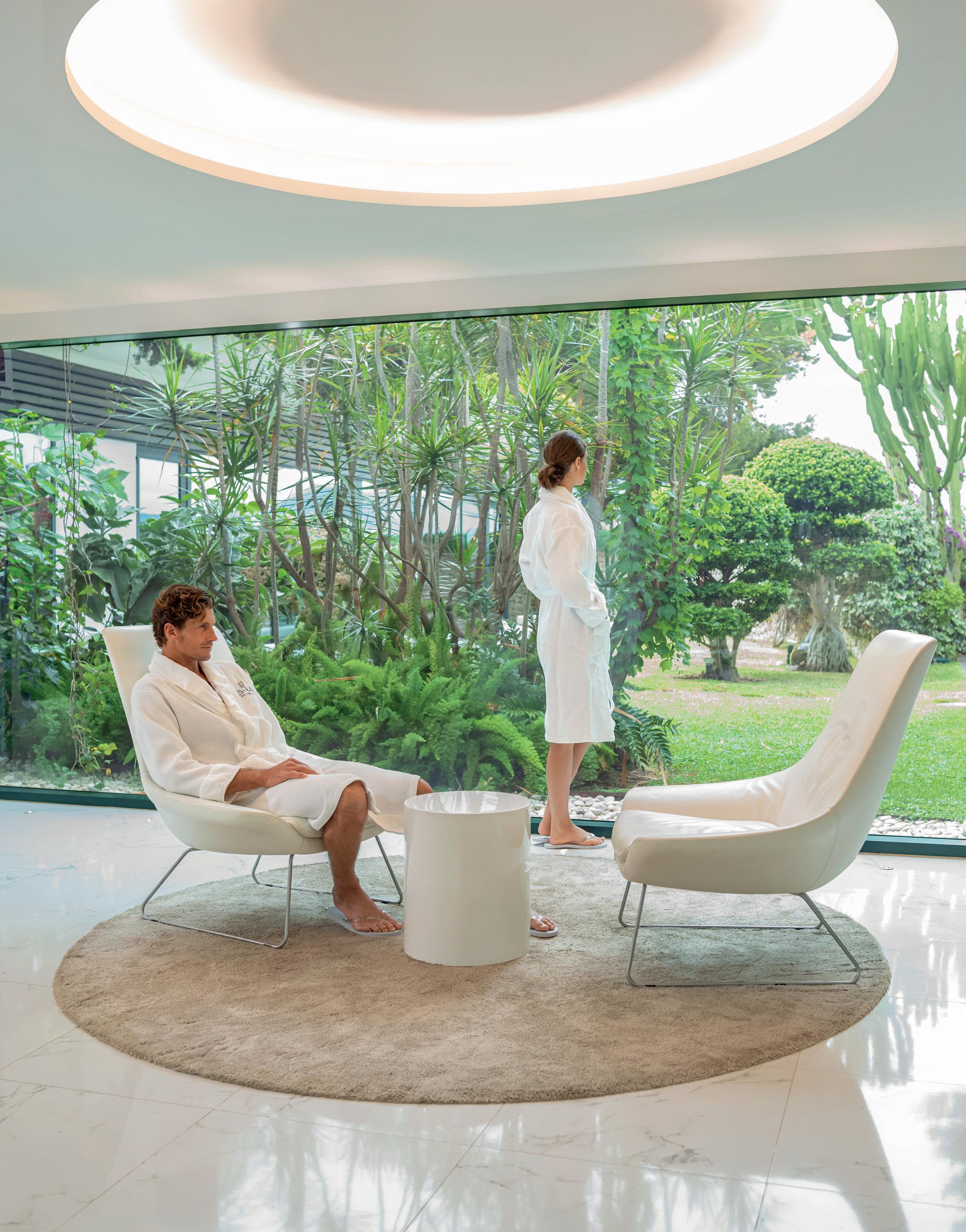 The 15-minute experience marks the conclusion of a 3-hour hydrothermal journey and sees guests reclining on ceramic heated loungers while listening to the hypnotic sounds.