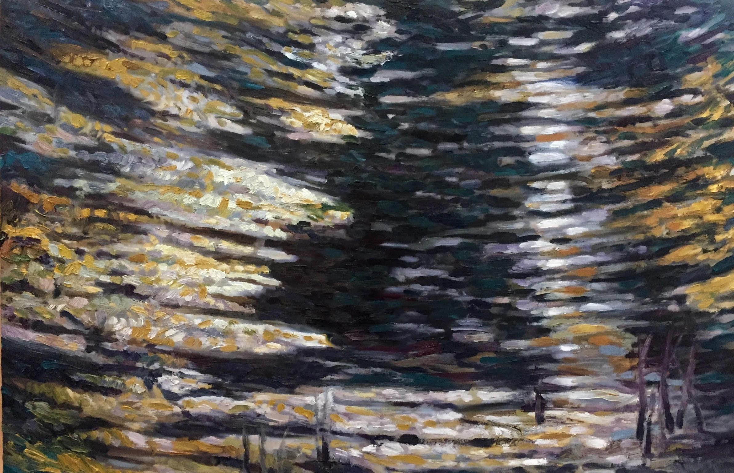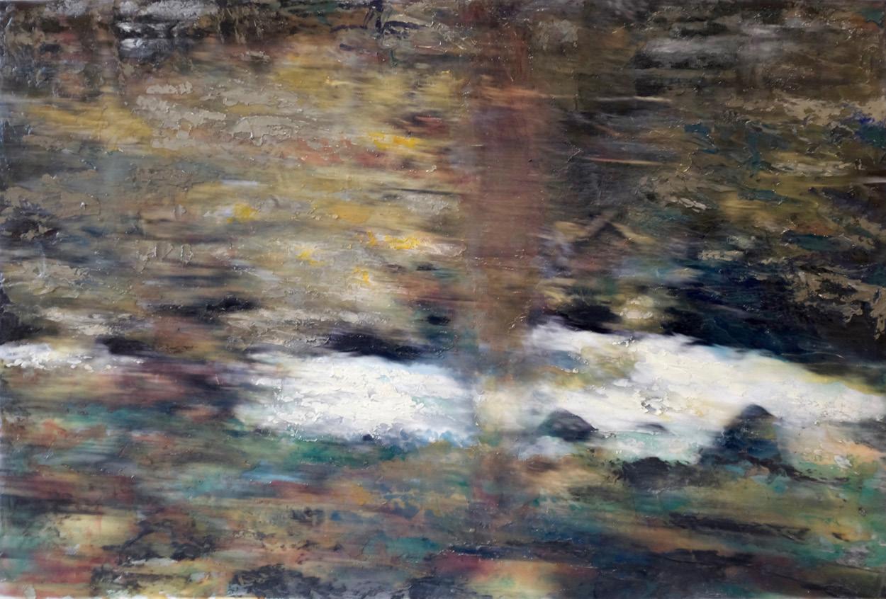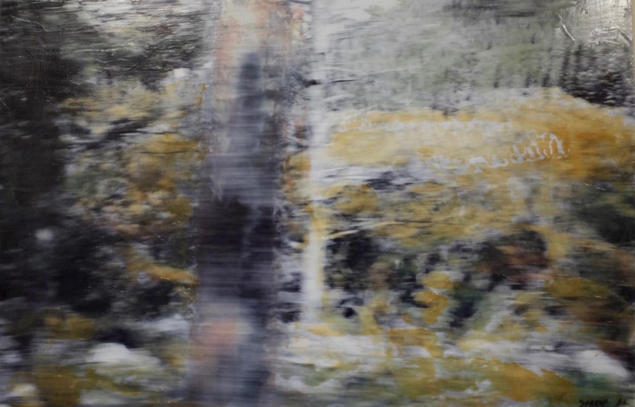 I utilize in my painting process reflects aspects of time that alters the image of the landscape reflected in the photo. In these works, a certain aspect of hope emerges through the luminosity of pigment. The value of colorfully grey pigment transforms each image through destruction and into transformation and illumination.