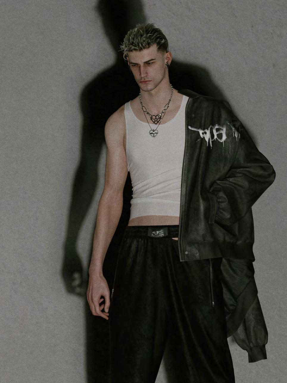 RIGHT: TOP MACA JACOB VEST + PANTS ERAUQS KENDRICK SWEATPANTS + ACCESSORIES DOPE+MERCY ENTANGLED SCARF + HX KINGDOM BEANIE
