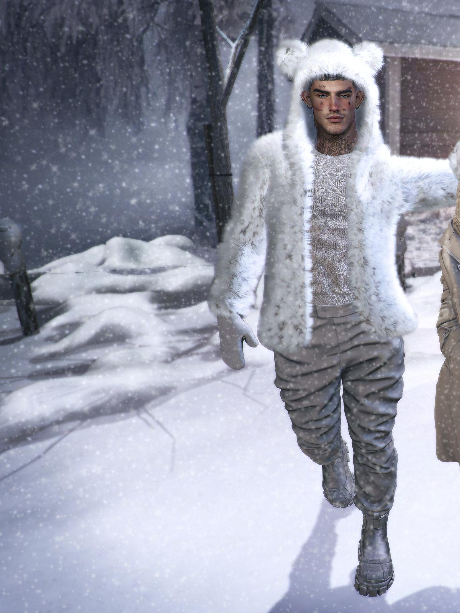 LEFT: TOP CANDYDOLL LARRY JACKET AND SWEATER + PANTS & SHOES O DON PANTS AND BOOTS SNOW + GLOVES PARE NESA SHERPA MITTENS
