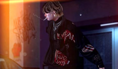 KAI, LEFT: HAIR DURA NA24 + OUTFIT [DEADWOOL] HART JACKET AND TROUSERS (flannel) + TURTLENECK