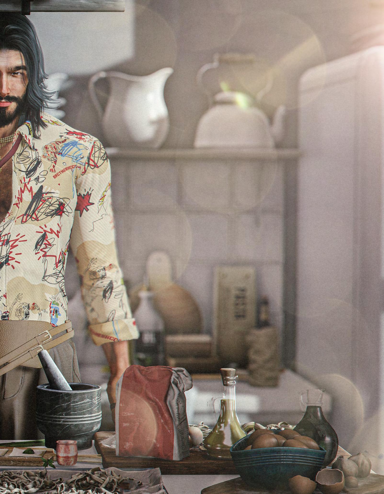 FEBRUARY 2023 149 HAIR DURA NA21 + FACIAL HAIR VOLKSTONE KAMAL BEARD + OUTFIT JEYS DOMENTOR2-/D SHIRT AND PANTS + NECKLACE Z O O M CHUNKY RUINS DECOR: NUTMEG. COUNTRYSIDE KITCHEN & FARMHOUSE KITCHEN + MERAK BAKING DECOR + DUST BUNNY PASTA LOVE + IONIC HOY PASTA