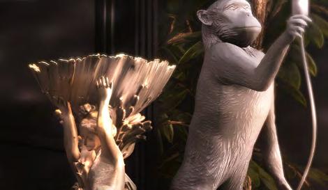 CONSIGNMENT CHARLIE THE MONKEY LAMP WHITE + FANCY DECOR HUGER LUXURY CANDLE GOLD + FANCY FALL RENOUVEAU FIREPLACE + LOUVRE MUSEUM SEVRES BOWL PORCELAIN + SOY ORIENTAL PLANTS POTTED FRUTICOSA + LUCIE ET LUCIAN RIVE GAUCHE APARTMENT (custom-orders only)