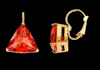 Explorez la symétrie fascinante et la splendeur des couleurs de notre nouvelle ligne de bijoux qui sont fabriqués à partir de pierres de verre triangulaires rouges et bleus turquoise.