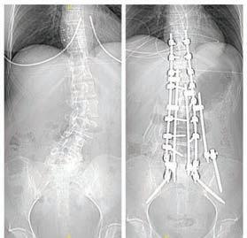 After consulting three orthopedic surgeons, a neurosurgeon, and finally referred to a Boston neurosurgeon at Massachuse s General Hospital, the la er recommended a spinal baclofen pump for pain control. Her husband, Bill Corwin, MD, reached out to a new colleague, Alan Daniels, MD, Chief of The Miriam’s Division of Spine Surgery, for advice on the pump recommendation. Dr. Corwin had met Dr. Daniels in The Miriam emergency department when he had helped care for a close family friend who presented with metastatic cancer to the spine. Dr. Daniels had worked extremely hard to make her final weeks as comfortable as possible after stabilization surgery. When approached regarding the request about the pump, Dr. Daniels asked permission to review Anna’s CT and MRI films. He and Dr. Corwin discussed having Anna come in for an evaluation. An offer was made to a empt corrective surgery, because “that is what we do,” Dr. Daniels explained.