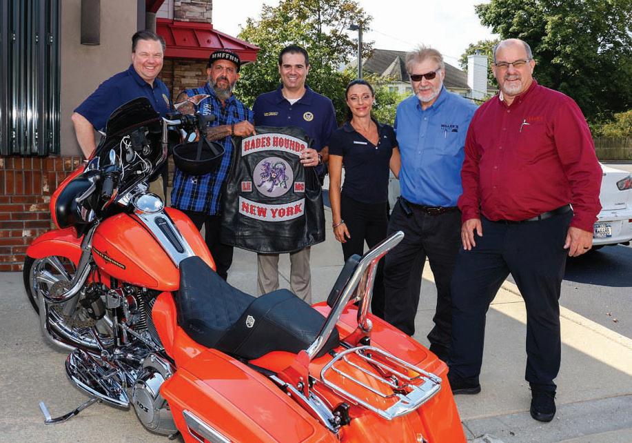 Hempstead Town Supervisor John Ferretti (third left) greeted Todd Wolpin, Christine Corr, Chris Nevins, and Lance Wolfe during the Motorcycle Ride and Car Show for the Gabby Petito Foundation on September 13 at Miller’s Ale House in Levittown. Also attending was Nassau County Legislator Tom McKevitt.