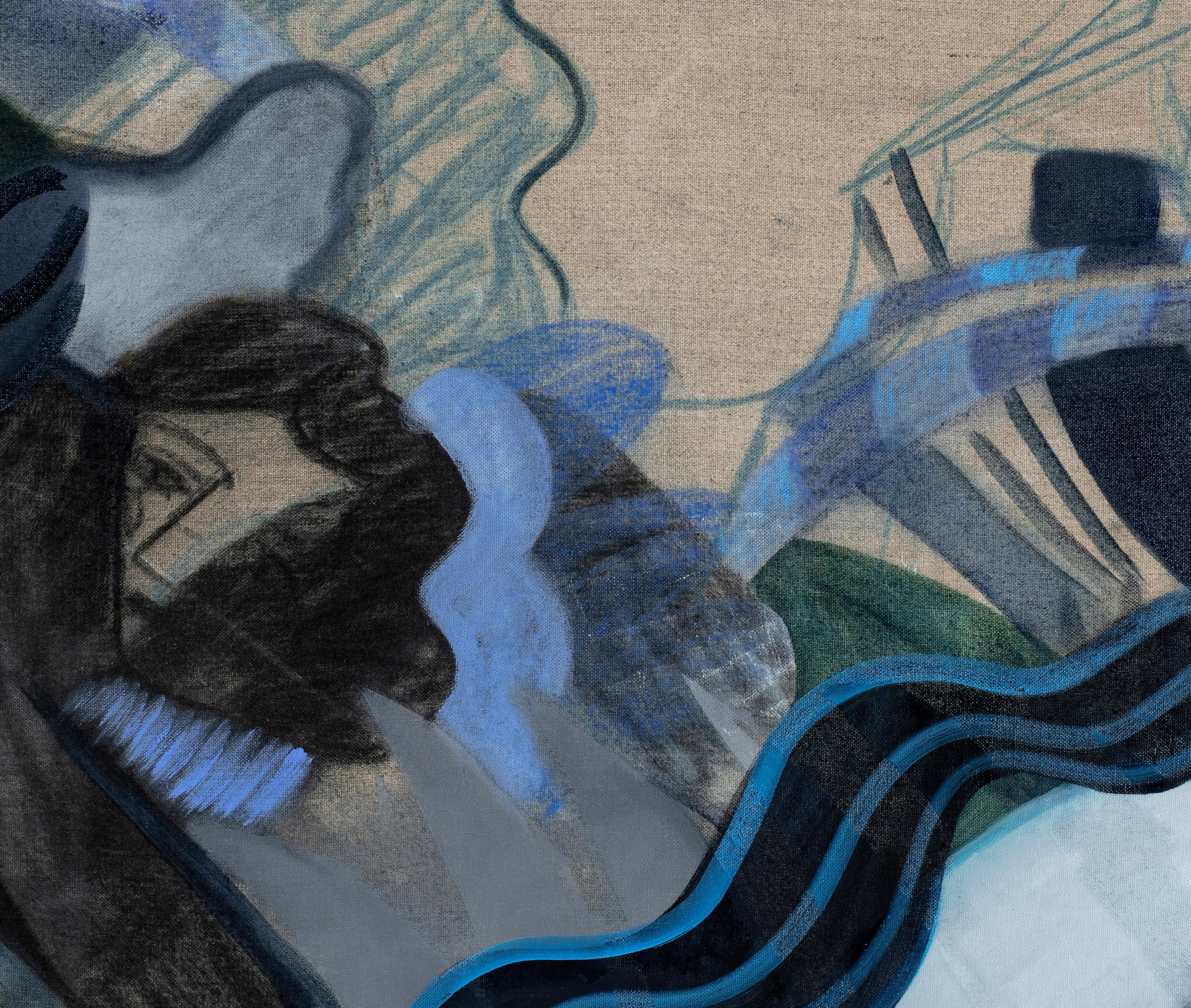 In this exhibition, as in many metaphorical voyages, the heart of the matter is not the destination itself, but rather the passion that sets off the journey and the challenges of the road that leads there. The backdrop of the imaginary journey proposed here can be associated with geographic, environmental, emotional, and mental aspects. The works featured in it, present a predominantly cool blue palette, as though wishing to create an island of coolness, a pleasant escape from the sweltering heat outside.