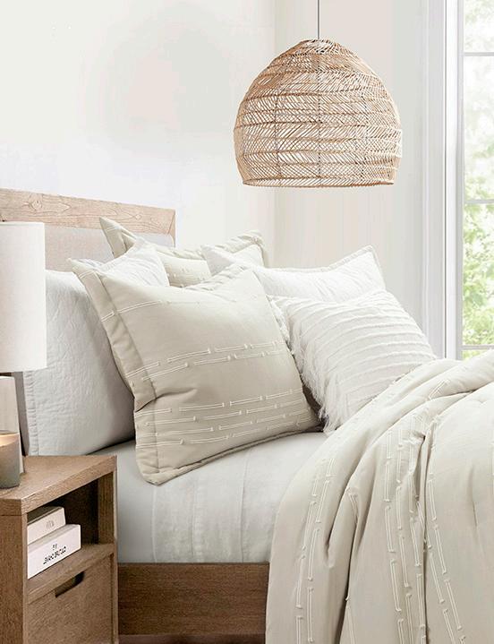 Timeless neutrals meet cozy quaint layers to maximize comfort and relaxation. Let the textures speak for themselves: simple, sleep-inducing, and oh-so soft.