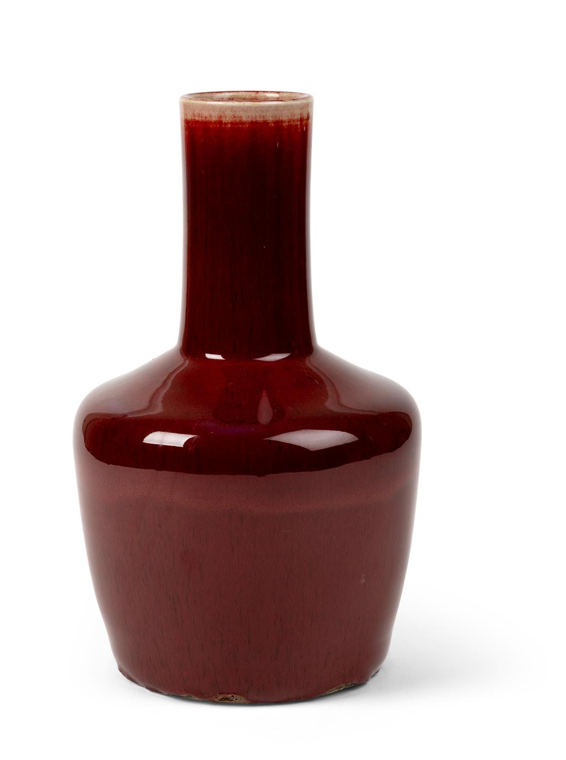 elegantly carved with five foliate lobes all the way from the body to the elongated neck, terminating into a splayed mouth rim, the wood has characteristic purplish hue 14.2cm high £500-700