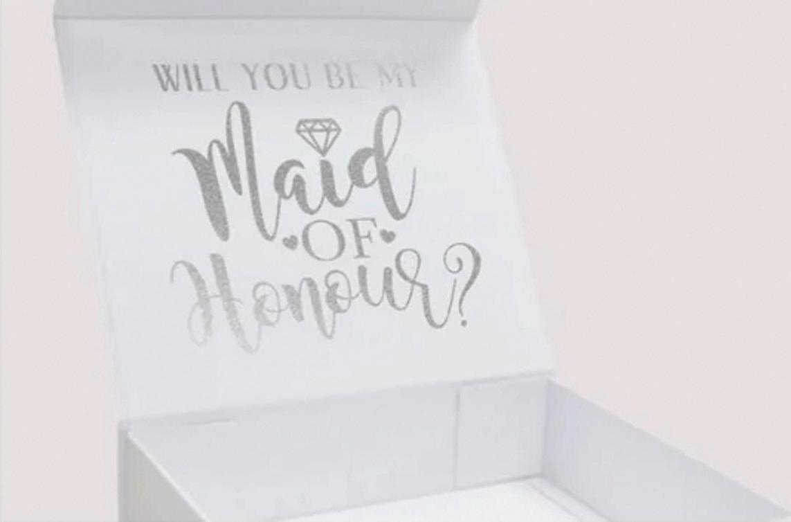 From bridesmaid and groomsman proposal boxes to laser engraved glassware, personalised coat hangers, cake toppers and wedding favours. We offer a fantastic range of products to help ensure your wedding day is everything you dreamed of!