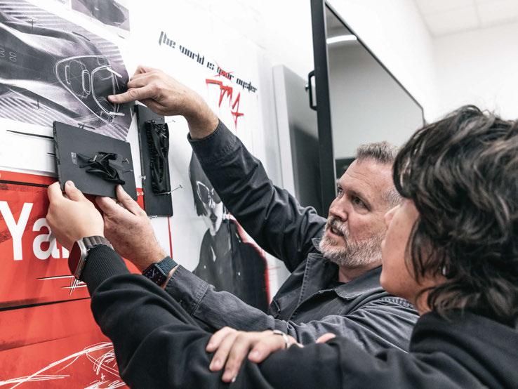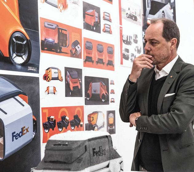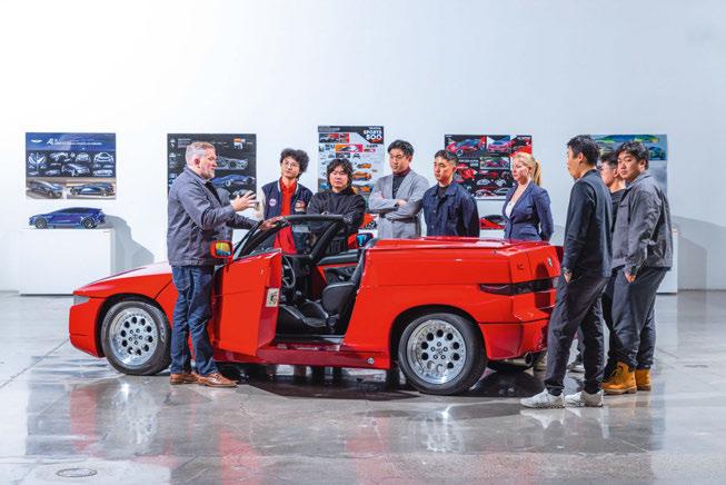 ‘Cars are giant emotional purchases. The outside gets you in, and once you’re in, it completes the mood. A good interior designer is harder to find than an exterior designer. You could staff an entire design studio with ArtCenter graduates.’ Evan got exclusive access to ArtCenter College of Design in Pasadena. See pages 108-110