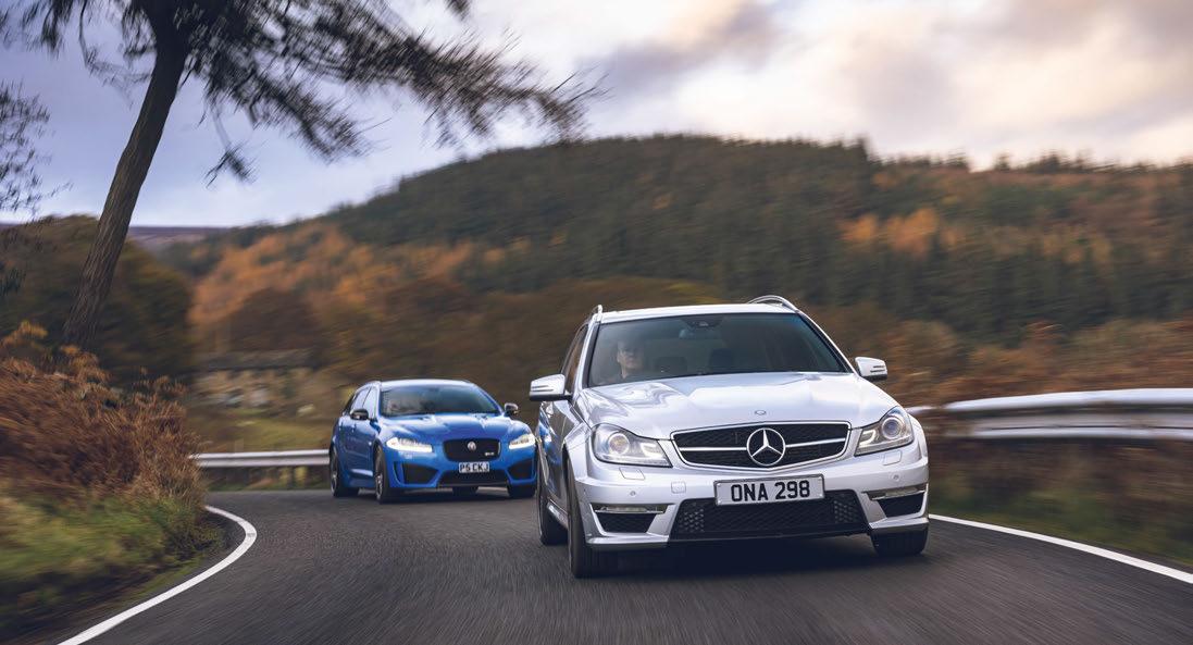 Loads faster: Audi RS2, Volvo 850 T-5R, Alfa 156 GTA, BMW E61 M5, Mercedes C63 AMG and Jaguar XFR-S Sportbrake do battle