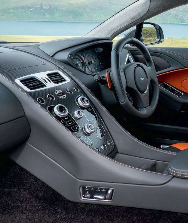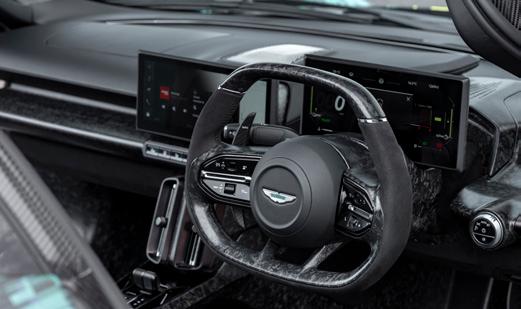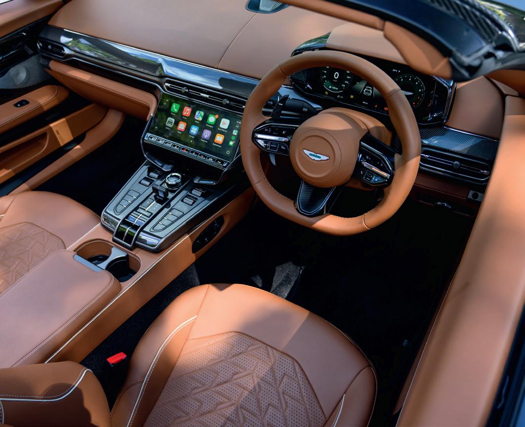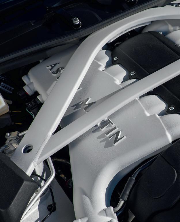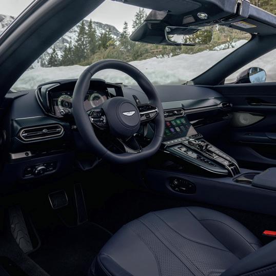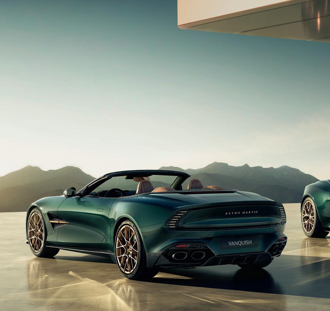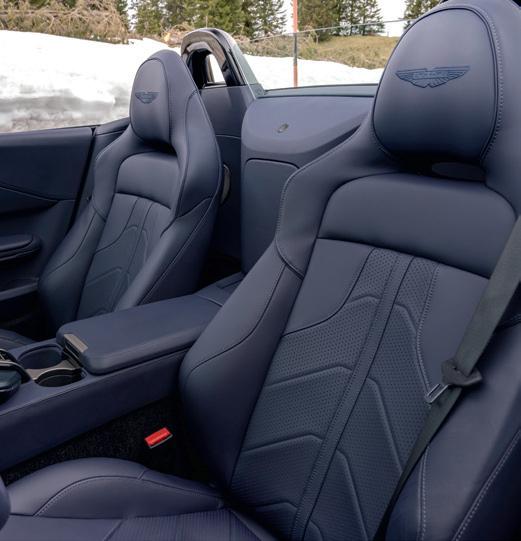 The mechanical specification of both will remain as standard, though there will be no complaints about that. Both DB12 and Vanquish have received rave reviews from the motoring media, and their performance figures are at near-supercar levels. The DB12 Volante’s 4-litre twinturbo V8 produces 671bhp, giving 0-60mph in 3.6sec and a top speed of 202mph. The Vanquish is even more powerful, its 5.2-litre twin-turbo V12 making a staggering 823bhp, which translates to a 0-60mph time of just 3.4sec and a top speed of 214mph, making it the fastest and most powerful production convertible Aston yet.