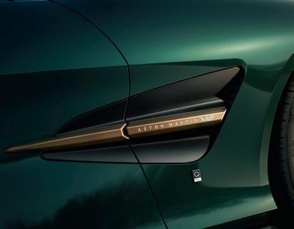 So these special editions are all about the aesthetics, and it’s unlikely they’ll disappoint there either. They’re finished in Q Pentland Green, with their hoods in Q Westminster Green fabric and accents in anodised bronze, as are the vanes in the front grille. The exclusive 21in wheels are finished in satin bronze with diamondturned edges, complemented by black, Aston-branded brake calipers. The bronze theme continues with the iconic Aston Martin side strake, precision-milled from solid billet aluminium and anodised, with an enamelled Q by Aston Martin badge sitting just below.