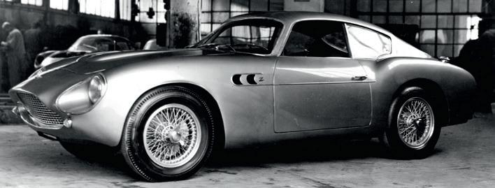 The very first DB4 GT Zagato pictured at the Zagato works in late 1960