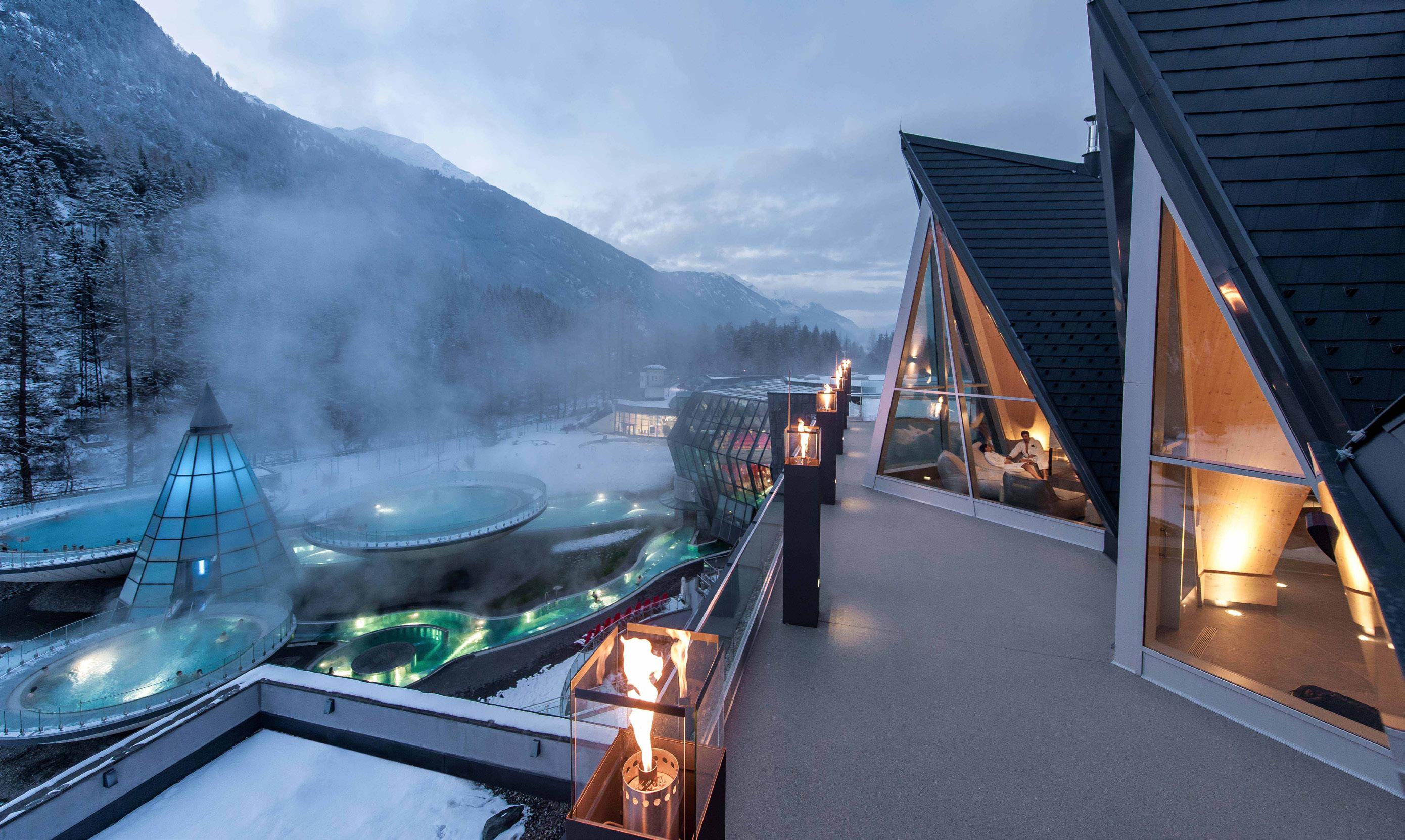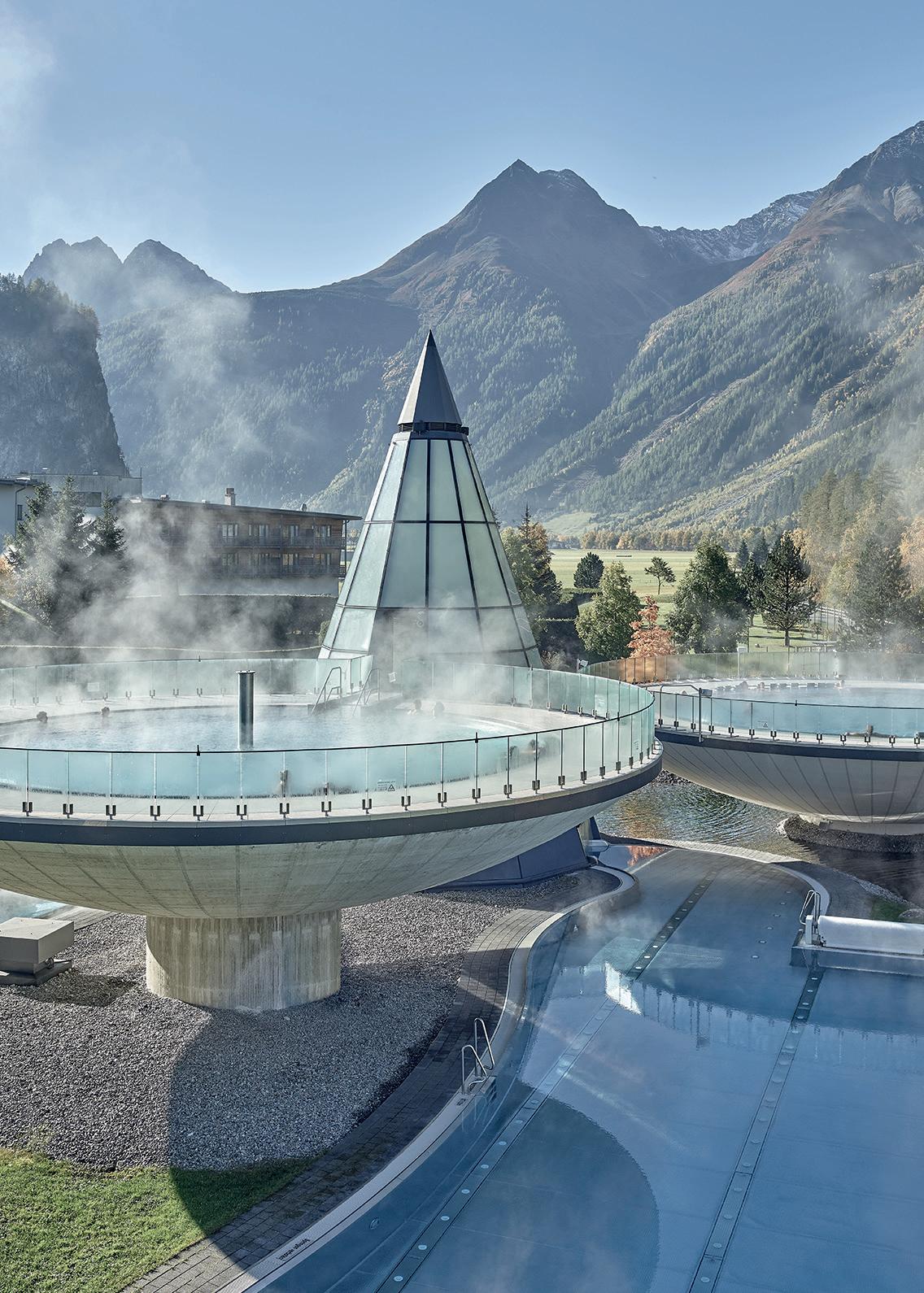 piscine interne ed esterne e 11 saune. Un consiglio: provate l’esperienza di galleggiare nelle vasche galleggianti esterne, ammirando le vette circostanti. Circondati da montagne, luoghi di forza e acque termali, corpo e mente raggiungono uno stato di euforia: Lift Your Spirit! Con stile e cosmopolita: il nuovo Look & Feel