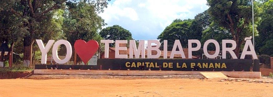 La colocación de las letras corpóreas en alusión al nombre de la ciudad de la Capital de la Banana, Tembiaporâ se encuentra en el centro mismo de la ciudad. El monumento fue instalado por la Municipalidad.