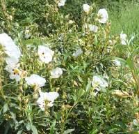 Cistus ladanifer is native in the region of Portugal and adapted to hot and dry climate. It can grow very dense and bush like. Its smell delights in spring and could even be appreciated in the form of oils.