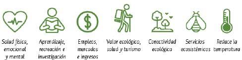 Existe una relación directa y cuantificable entre la cobertura vegetal (árboles, jardines, huertas) y el confort y la salud humanos. Entre los beneficios de conservar y promover las infraestructuras verdes se encuentran los siguientes: