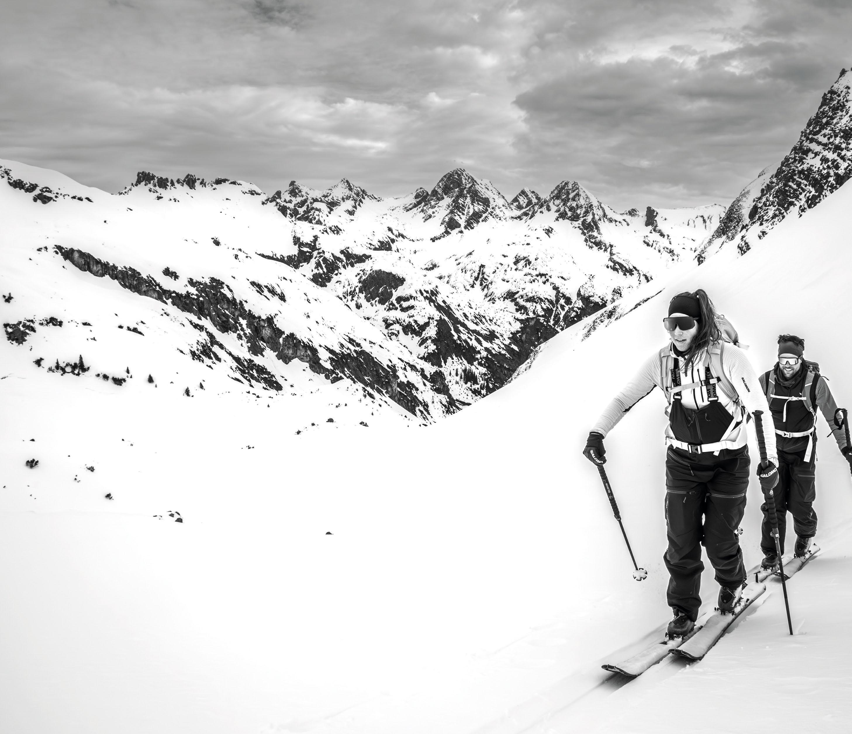 Metern gelegen starten Tourengeher direkt vor der Hoteltüre in das Outdoor-Abenteuer: So ist etwa die Skitour auf die Blauspitze (2.575 Meter) besonders für Anfänger geeignet.