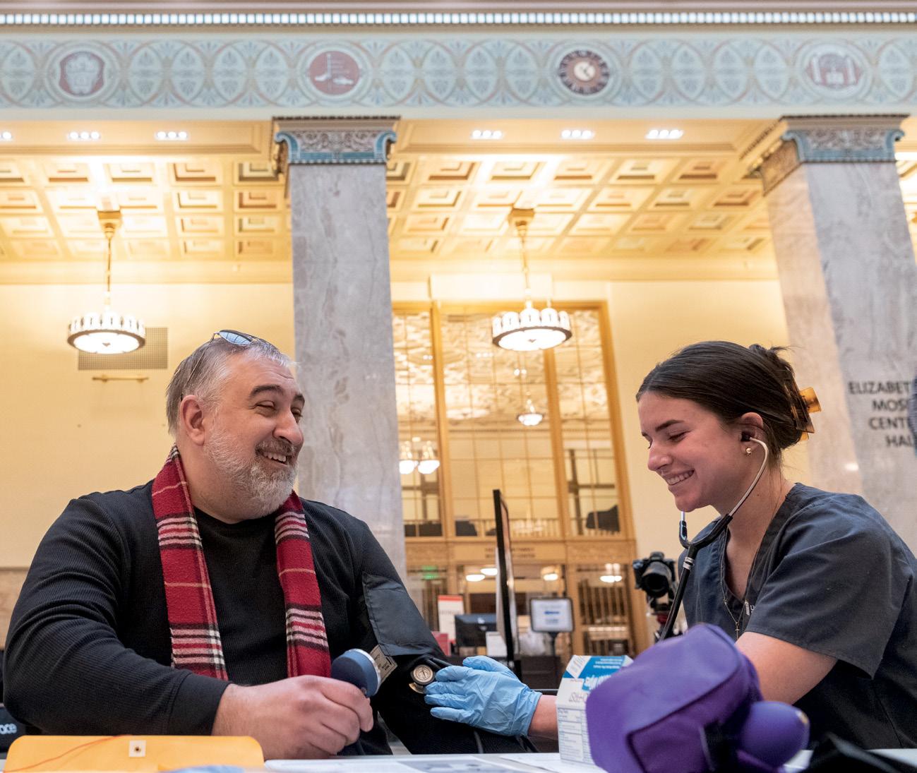 When a patron comes in, Zimberg said, students ask what health concerns they may have — like a minifocus group — and that information helps guide lessons for future weeks. Each week, two students are required to do a health presentation to the rest of the group. For example, Zimberg said, a patron came in asking about managing stress. Zimberg asked the patron to come back again the following week, and students were