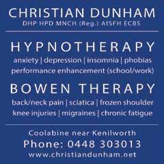 6 |14 DECEMBER 2022 The Mary Valley Voice CATERING FOR ALL ASPECTS OF TREE WORKS 0458 659 710 Servicing the Sunshine Coast and Hinterland Gympie and surrounding areas QUALIFIED ARBORIST Fully Insured – Free Quotes Stump Grinding – Cherry Picker Hire Earthworks – Email bushandbeachtrees�live.com.au www.bushandbeachtreeservices.com.au THE MARY VALLEY VOICE © JULY 2019 GREEN EARTHWORX We don’t do average. D6H and D6 winch Dozer 22T and 1.5T Excavators Posi Track Bobcat Crane Truck with Tipper 100hp Tractor Slasher Logging, Tree Felling, Firewood MARY VALLEY VOICE © 2015 Servicing the Hinterland. Lisa & Ray Green 0457 336 122 • 0487 549 250 greenearthworx@bigpond.com Solicitors visiting Kenilworth Thursday afternoons by appoinment only 5447 3122 e: admin@cartlaw.com.au CARTWRIGHTS Lawyers • • • • UNDER & OVER ELECTRICAL Are your powerlines safe enough? • Supply & install either underground or overhead powerlines • Maintenance checks on existing lines • Free quotes Martin 0412 321 197 email: under.over@bigpond.com Licence # 69449 Storage EUMUNDI Clean • Secure • Self-lockable units Free pickup (conditions apply) PHONE 5442 8627 MARY VALLEY Slashing | Light Scrub Clearing 4WD tractor, 6ft slasher, 8ft stickrake Call Jos Wilson 0407 944 563 THE MARY VALLEY VOICE © OCT 2021 Ph Tim to discuss work needed. www.bundesenfamilybuilders.com.au CALL ZAK - RELIABLE ELECTRICIAN 25 YEARS SWITCHBOARDS UPGRADES, SAFETY SWITCHES. UNDERGROUND POWER - SHED, CABIN, STUDIO Fans, LED Lights, Outdoor Lights, Power. Energy Saving Solutions, Security Lights. Photo Smoke Alarms, SOLAR Service. Lic 72787 RV ELECTRICAL 0413 885 504 eastonlawyers your local lawyers 62 Maple Street, Maleny | T 5494 3511 6B/3 Obi Obi Road, Mapleton | T 5478 6500 P.O. Box 255 Maleny Qld 4552 | F 5494 2477 Wishing all our valued customers a safe and happy Christmas your local lawyers 62 Maple Street, Maleny | T 5494 3511 PO Box 255 Maleny Q 4552 | F 5494 2477 MARY VALLEY MILK Servicing the local area for over 40 years. Avail. 7 days a week maryvalleymilk@bigpond.com We supply molasses for rural delivery. All areas. Kenilworth, Brooloo, Moy Pocket, Belli Park, Obi Obi, Coolabine, Kidaman Creek, Little Yabba, Conondale. DRINKING WATER 5446 0736 DOMESTIC WATER 11,000 LITRES Lic No. DWC14/0021 KENILWORTH Plumbing & Gas 0477 017 976 • Hot Water Units Electric / Gas • Q.B.S.A. # 040206 kenilworthplumbingandgas@gmail.com THE MARY VALLEY VOICE © 2022