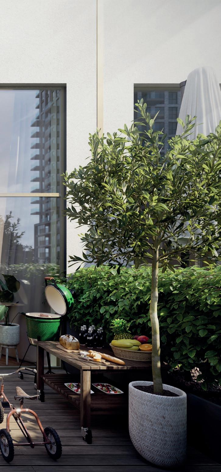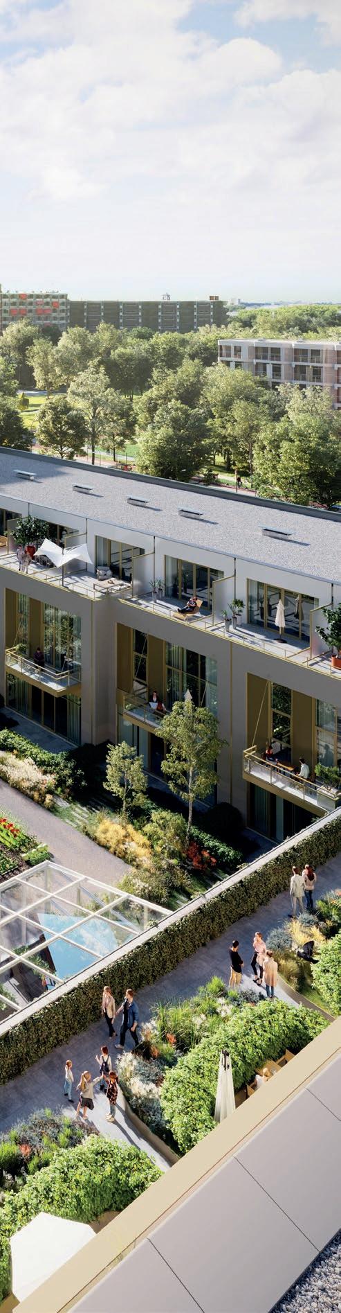 De genereuze terraswoningen zijn tweelaagse appartementen en hebben twee verdiepingen die dit type woning twee karakters geeft. Enerzijds gericht op het levendige stadscentrum en anderzijds georiënteerd op de groene oase aan de binnenkant van het complex. De compacte entreelaag combineert de slaapkamers, de bergruimte en de badkamer (bij de drie terraswoningen aan de westzijde zelfs de beide badkamers) op een efficiënte manier. Op de ruimtelijke terrasverdieping met loftkarakter leiden trappen via een ruime woonkamer aan de stadskant naar een enorme leefkeuken aan de kant van de binnentuin. Royale raampartijen zorgen voor veel licht en verbinding met een riant dakterras, met uitkijk op de gemeenschappelijke binnentuin.