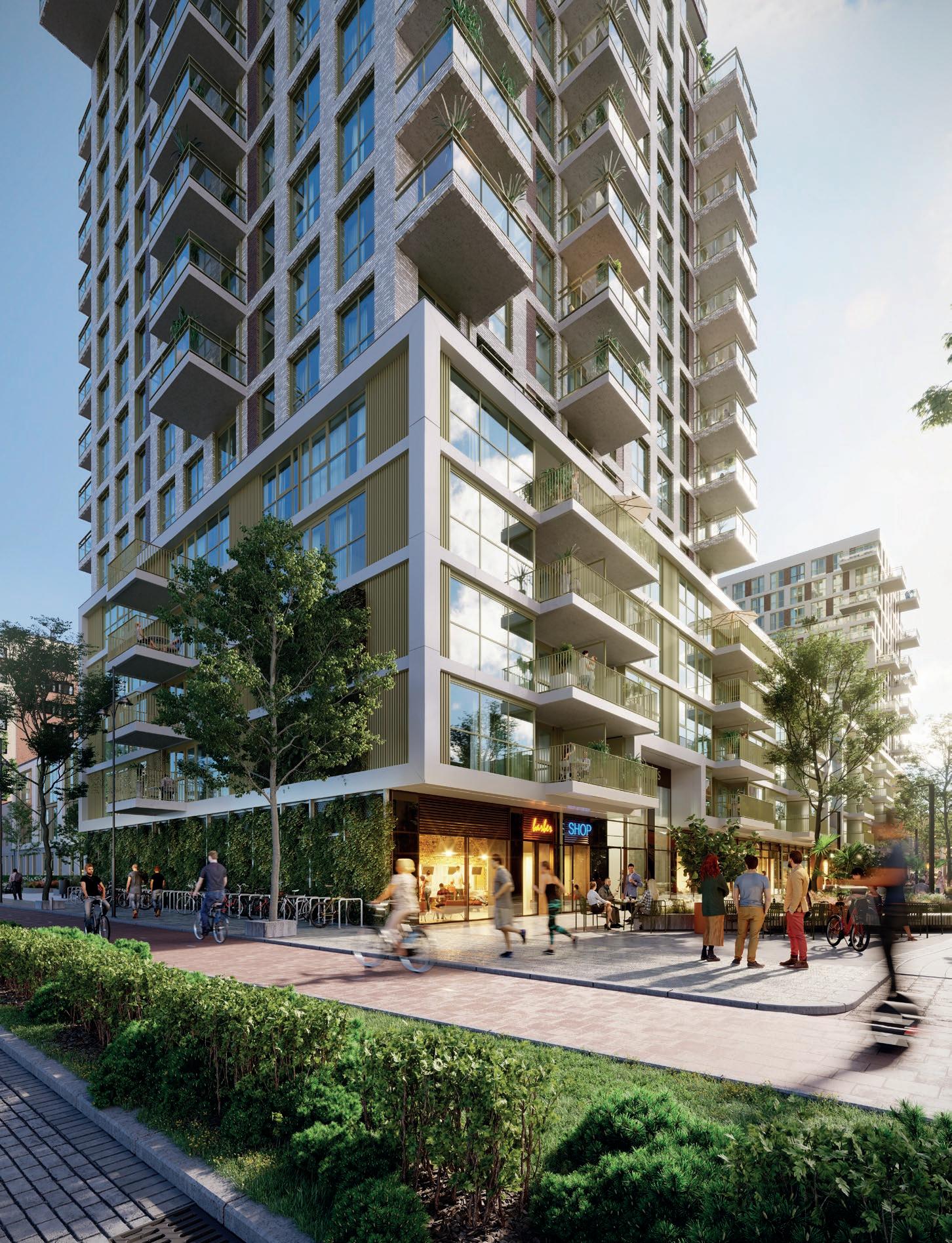 Onder de woningen bevindt zich een bestaande parkeergarage (P5). Hier kunt u een parkeerplek huren. Via de parkeergarage heeft u tevens toegang via de onderdoorgang of via de winkelstraat naar de Hoogvliet supermarkt, deze is gesitueerd aan de Pr. Johan Friso Promenade. Tegen de oplevering wordt hier nog een 2e supermarkt geopend die direct met liften vanuit de parkeergarage bereikbaar is. Ook wordt voorzien in diverse winkels langs de nieuw aan te leggen leefstraat.