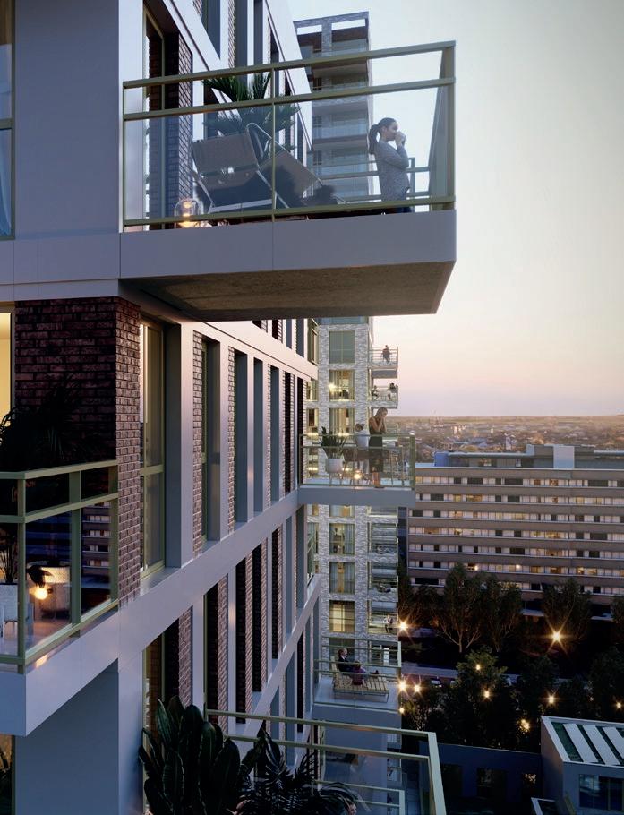 Genereuze buitenruimtes koppelen de appartementen optimaal aan verre uitzichten.