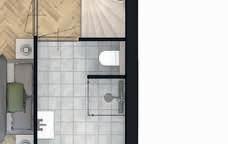 De badkamer en toilet(ten) worden compleet afgewerkt. Er worden antraciete vloertegels aangebracht in n.t.b. formaat, waarbij de douchehoek op afschot in kleiner formaat tegel zal worden afgewerkt. De wandtegels worden in de kleur wit aangebracht met een n.t.b. formaat. Het tegelwerk zal in de badkamer tot aan het plafond worden aangebracht. In het toilet worden de tegels tot ca. 1,25m. gemonteerd, hierboven zal spuitwerk worden aangebracht.