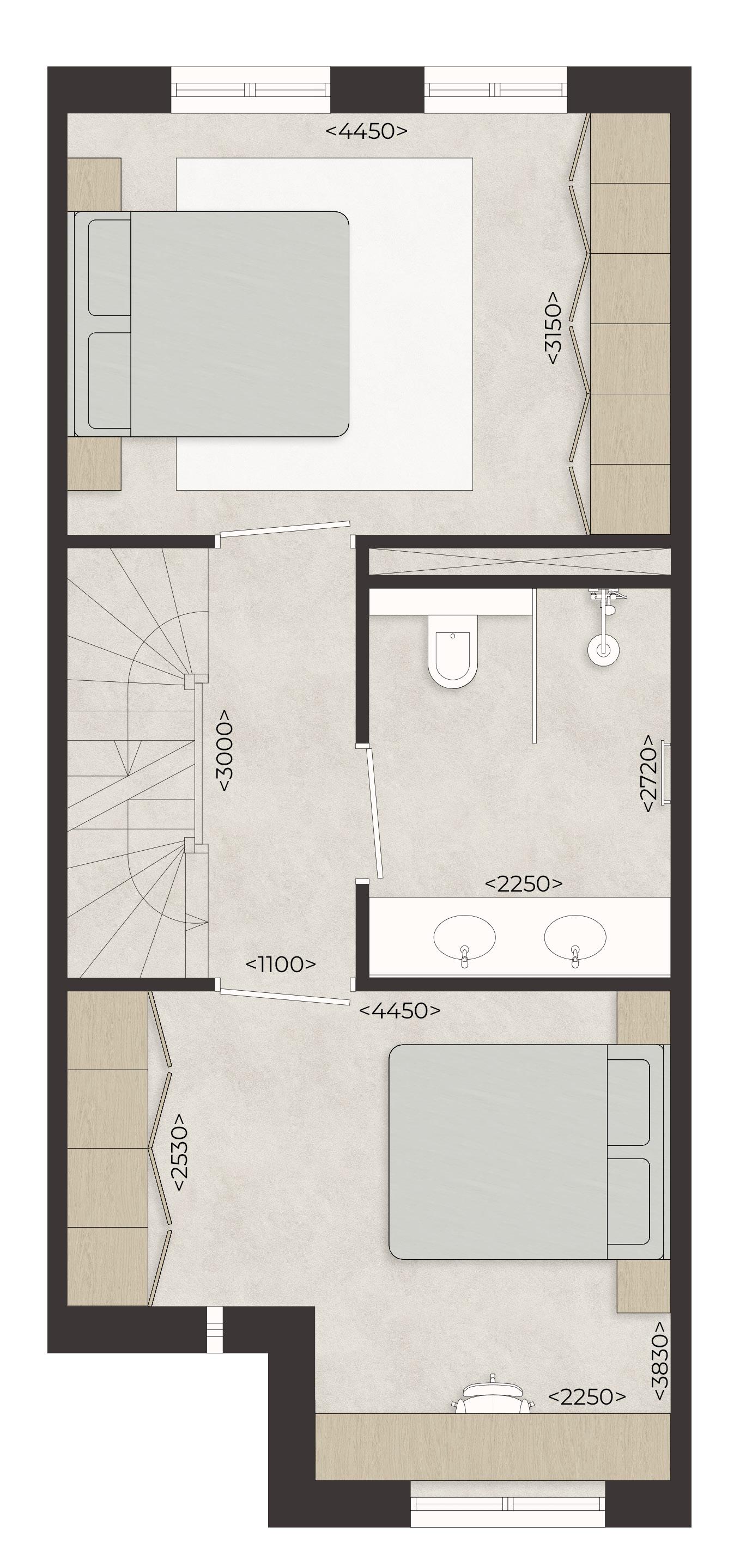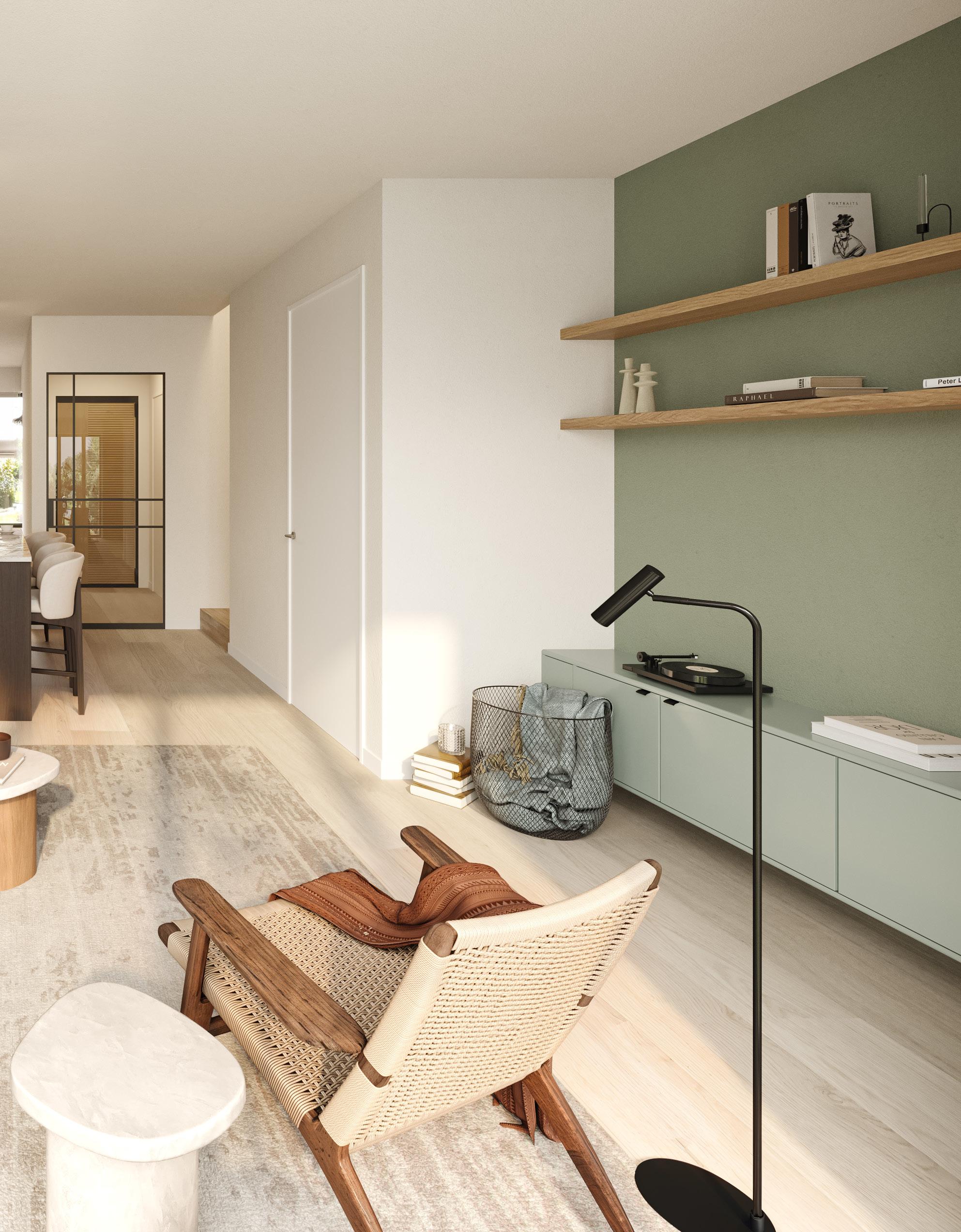 Beneden geniet je van comfort en sfeer, met een grote moderne leefkeuken en gezellige living. Op de eerste verdieping bevinden zich drie (slaap)kamers en een moderne badkamer. Vijf woningen van dit type hebben op deze verdieping bovendien een balkon of dakterras. Op de zolderverdieping kan een vierde slaap- of werkkamer worden gemaakt. Binnen én buiten: altijd genoeg plek voor het hele gezin.