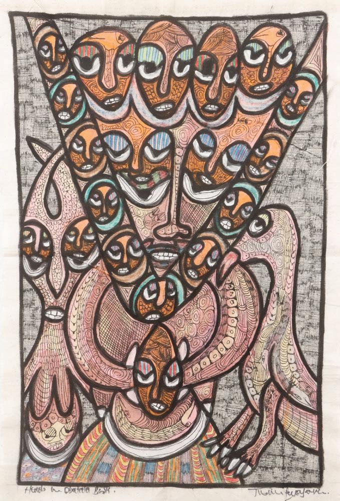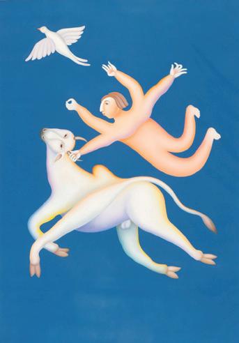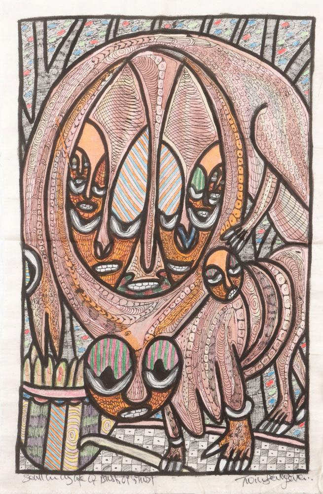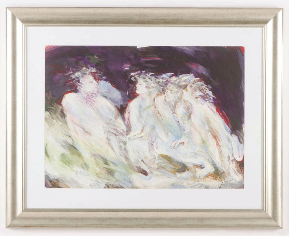 435. Jaleh Pourahang (Iranian, 20th c.) "Phoenix", 1986, acrylic painting on paper, signed and dated. Framed. Size: 11.5'' x 15'', 29 x 38 cm (sight); 16'' x 19.5'', 41 x 50 cm (frame).