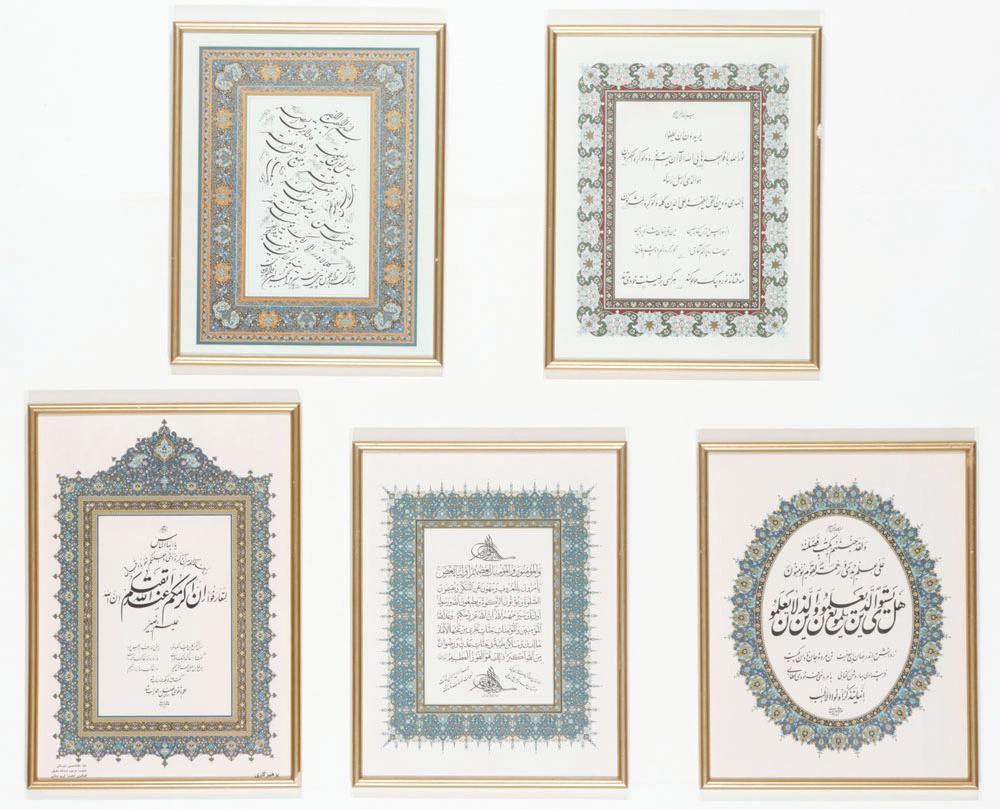 442 . Group of 5 Arabic Scripts, signed. Framed. Sizes Ranging From: 16.5'' x 13'', 42 x 33 cm (sight); 17.5'' x 14'', 44 x 36 cm (frame); To: 18.5'' x 13'', 47 x 33 cm (sight); 19.5'' x 14'', 50 x 36 cm (frame). $300-600. Start: $150