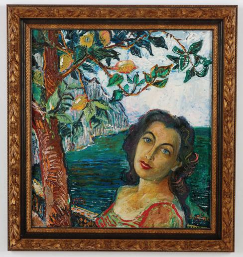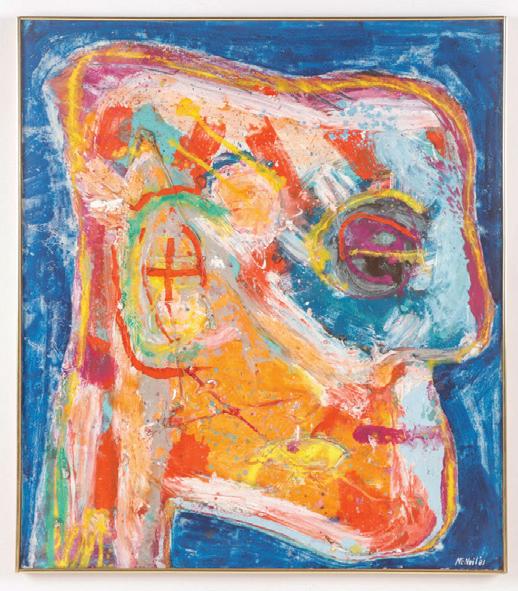 14. George McNeil (American, 1908-1995) "Radiant Head", 1981, oil painting on canvas, signed and dated. Framed. Size: 50'' x 44'', 127 x 112 cm (stretcher); 50.75'' x 44.75'', 129 x 114 cm (frame). Provenance: Private NY Estate; Acquired from Gruenebaum Gallery, Ltd, New York, New York, 1983. $2000-4000. Start: $1000