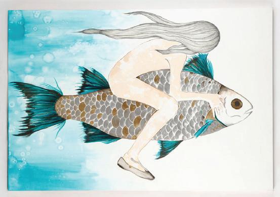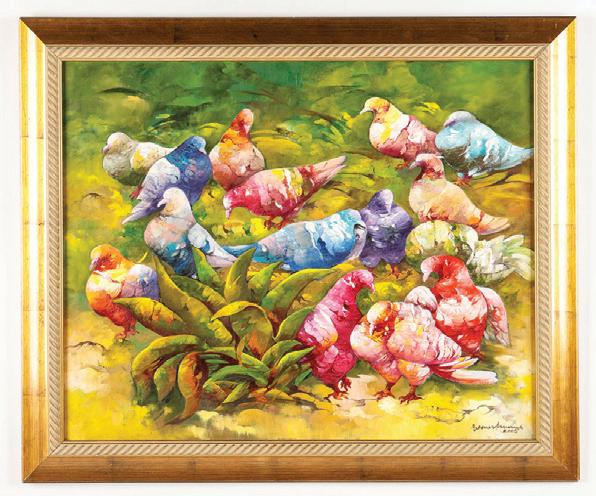 426. Farzaneh Mahjoobi (Iranian, b. 1979) "Sea Birds", 2009, acrylic painting on canvas, signed and dated. Unframed. Size: 27.5'' x 27.5'', 70 x 70 cm (stretcher).