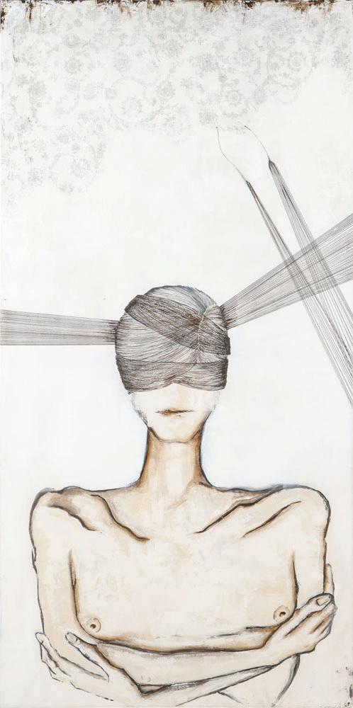 389. Sanam Enayati (Iranian/American, 21st c.) "Defiance," 2009, acrylic, ink and mixed media painting on canvas. Unframed. Size: 68'' x 34'', 173 x 86 cm (canvas).