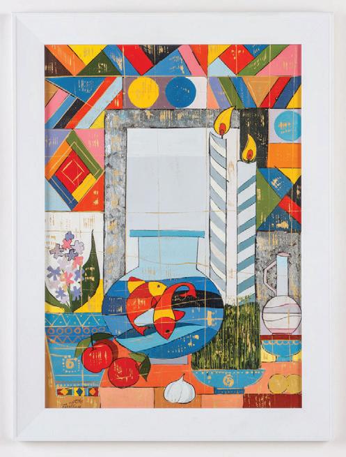 417. Parastou Ahmad-Khanlou (Iranian, 21st c.) "Nowruz", 2009, mixed media painting, signed and dated. Framed. Size: 26.5'' x 18.5'', 67 x 47 cm (sight); 31'' x 23.5'', 79 x 60 cm (frame).
