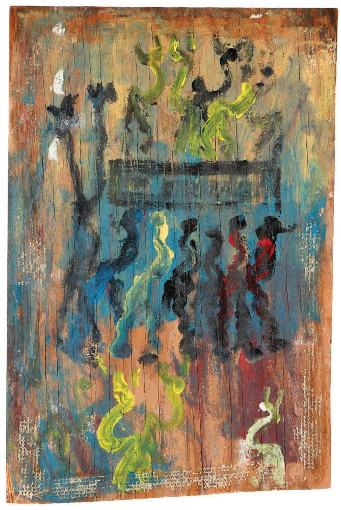 428. Mohammad Djalali M. Sahar (Iranian, 21st c.) Untitled, 2004, mixed media painting, signed and dated. Framed. Size: 9.5'' x 14.25'', 24 x 36 cm (sight); 15.75'' x 19.5'', 40 x 50 cm (frame).