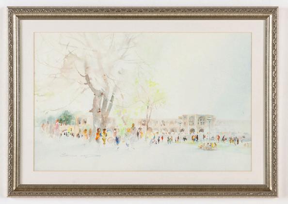 390. Mohsen Shadan (Iranian, 20th c.) Untitled, 1992, watercolor painting on sheet, signed and dated. Framed. Size: 11.5'' x 8'', 29 x 20 cm (sight); 20.5'' x 17'', 52 x 43 cm (frame).