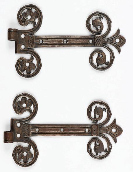 Hand Forged Iron Hinge Hardware (2 pc), each with stamped signature. Each Size: 9.5'' x 6'' (24 x 15 cm). $800-1600. Start: $400