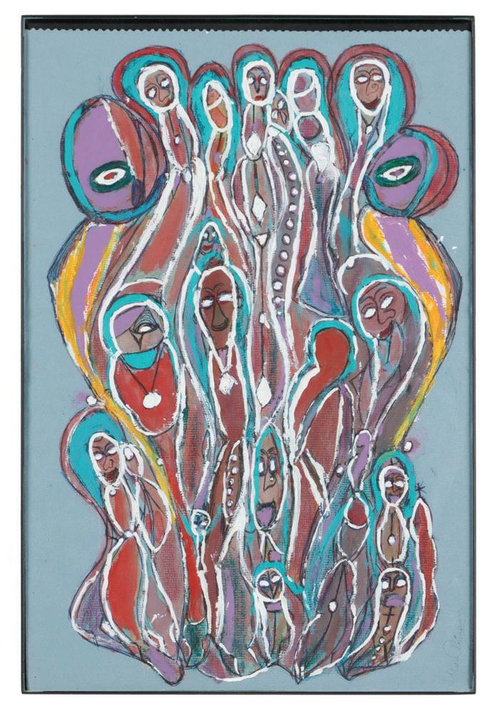 416. Ghoncheh Haery (Iranian, 20th/21st c.) Untitled, 2000, mixed media painting on paper, signed and dated. Framed. Size: 23'' x 32'', 58 x 81 cm (sight); 25.25'' x 34.75'', 64 x 88 cm (frame).
