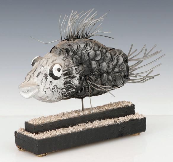 4. Gregory "Mr. Imagination" Warmack (American, 1948-2012) "Fish", 2004, mixed media sculpture, signed and dated. Size (overall): 12'' x 15.5'' x 4'' (30 x 39 x 10 cm). Proceeds of the sale of this lot to benefit Intuit.