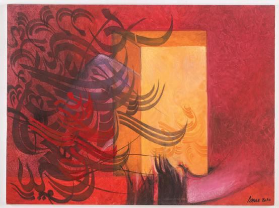 411. Massoomeh Moradi (Iranian, 21st c.) Untitled, 2009, mixed media painting on canvas, signed and dated. Framed. Size: 39.5'' x 47.5'', 100 x 121 cm (stretcher); 40'' x 48'', 102 x 122 cm (frame).